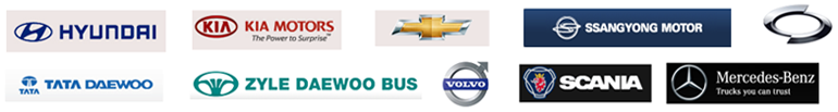 MOBIS, GM Daewoo, Ssangyoung Motor, SAMSUNG, TATA Daewoo, Daewoo Bus, HYUNDAI Bus, Volvo, SCANIA, Mercedes-Benz Truck